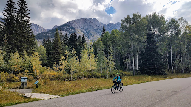 To extend our range, we rented e-bikes. For the month of September, the section of the Bow Valley Parkway from Banff to Johnston Canyon is closed to car traffic. As a result, the 30 mile ride, with it's stunning scenery, can be enjoyed at your own pace, without fear of fast moving traffic.